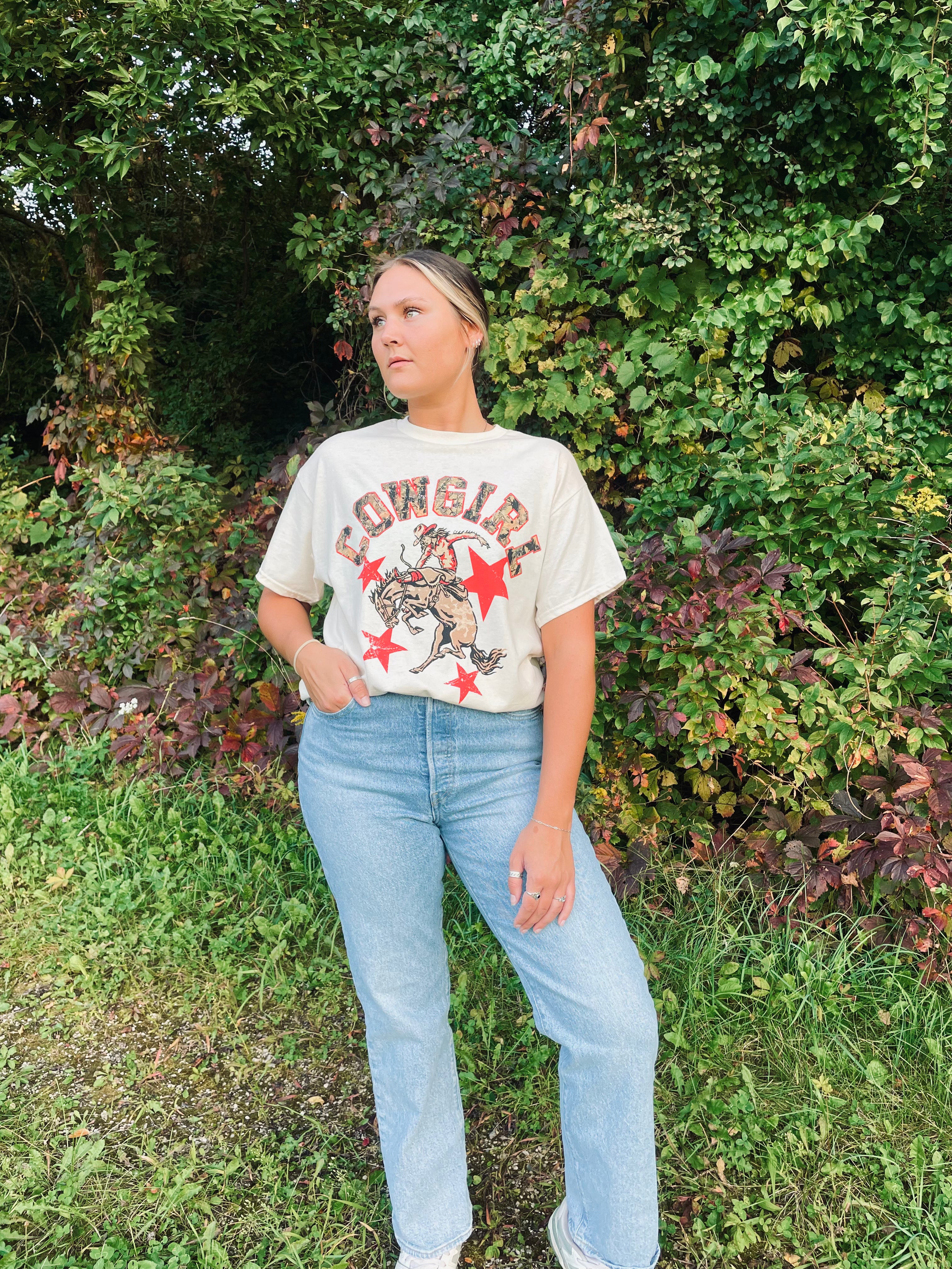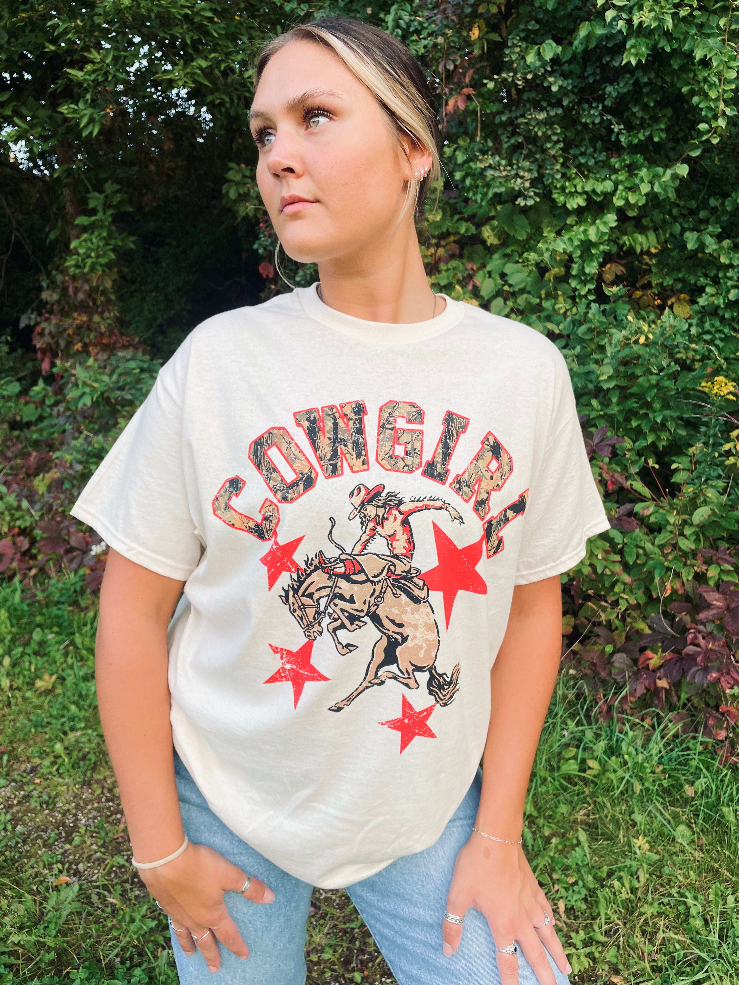 Cowgirl Tee - L/XL is backordered and will ship as soon as it is back in stock.