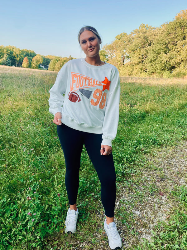 Football Sweatshirt - small is backordered and will ship as soon as it is back in stock.